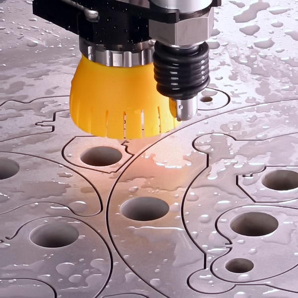 - портальный станок, оснащённый оборудованием трёхкоординатного позиционирования, оснащённый ЧПУ. Агрегат имеет специальную ванну, в которую собираются продукты резания и рабочая смесь.