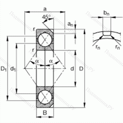 Шарикоподшипник радиально-упорный с четырехточечным контактом QJ 320-N 2-MPA