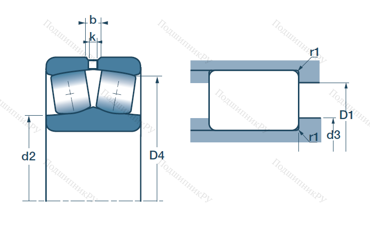 - двухрядный подшипник воспринимает комбинированные нагрузки (двухсторонние осевые и радиальную).