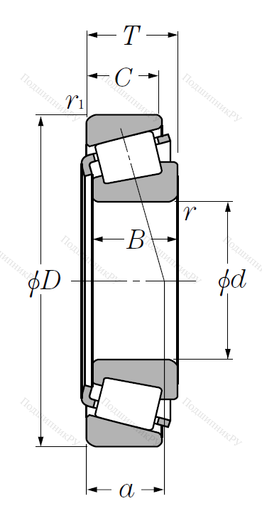 Конический роликовый подшипник 4T-32011 относится к типу конструкций, включающих в себя внешнее и внутреннее кольца, а также ролики в форме конусов. Модель выдерживает одновременно радиальные и осевые вектора приложения, давая возможность совершать вращения без скольжения.