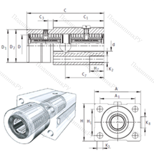 Подшипник шариковый линейный KTFS 25-PP-AS