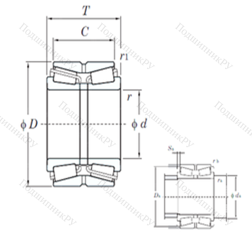 Подшипник роликовый радиально-упорный 46230 у которого конструкционной особенностью являются ролики в форме конуса и разъемный корпус. Изделие также может быть укомплектовано наружным кольцом с упорным бортиком или большим углом, двухрядными или четырехрядными роликоподшипниками, утолщенной внешней шиной.