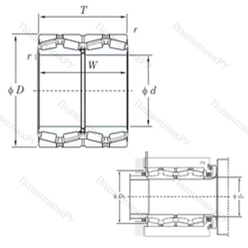 Подшипник роликовый радиально-упорный 47240 у которого конструкционной особенностью являются ролики в форме конуса и разъемный корпус. Изделие также может быть укомплектовано наружным кольцом с упорным бортиком или большим углом, двухрядными или четырехрядными роликоподшипниками, утолщенной внешней шиной.