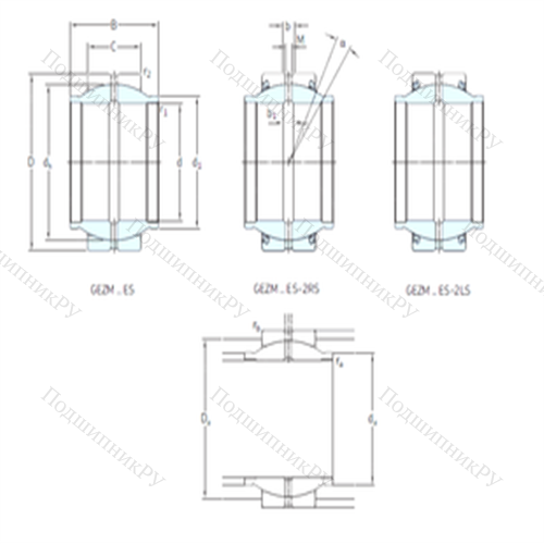 Подшипник скольжения сферический GEZM100ES конструкция которого представлена внешним кольцом, внутри вращается внутренняя обойма. Существуют прямые, шарнирные (самовыравнивающиеся), угловые, гидравлические, двойные шарикоподшипниковые и роликоподшипниковые варианты исполнения. Отдельные разновидности изделий (с парой трения «сталь – сталь») нуждаются в обслуживании и имеют каналы для подачи смазки, в то время как другие не нуждаются в ТО. В первом случает система включает в себя пару стальных шин, обработанную предварительно фосфатами и дисульфитом молибдена. Необслуживаемые модели покрываются политетрафторэтиленом, армируются медью и дополнительно усиливаются хромом.