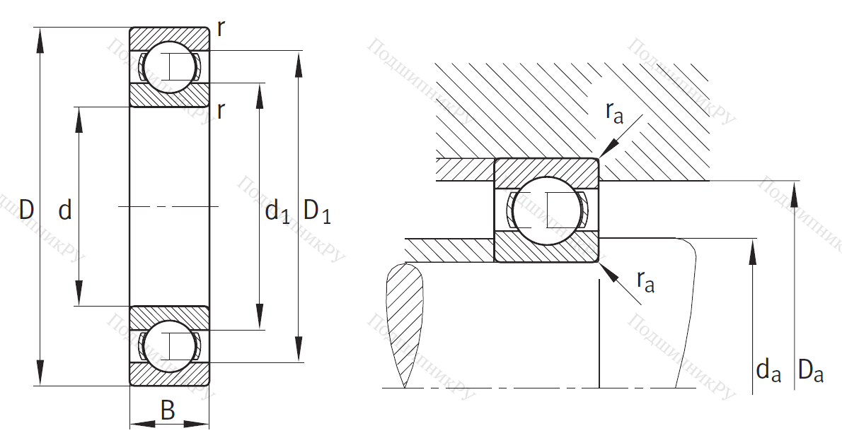 В зависимости от типа выполняется со стандартным, уменьшенным, С2, или увеличенным С3 (4,5) зазором. Рассчитан на восприятие высоких аксиальных нагрузок при величине осевых, стремящеихся к нулю. Предлагается в метрическом и дюймовом исполнении. Не является самоустанавливающимся. Требует высокой соосности (допустимый перекос ≤15’). Для надёжной работы подшипник данного типа должен находиться под постоянным воздействием определённой внешней нагрузкой.