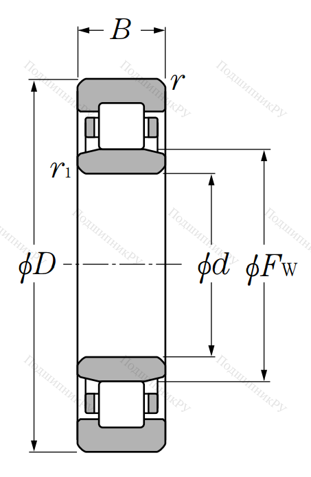 Роликовый цилиндрический подшипник NU 313, это разновидность однорядного роликоподшипника в метрическом исполнении.