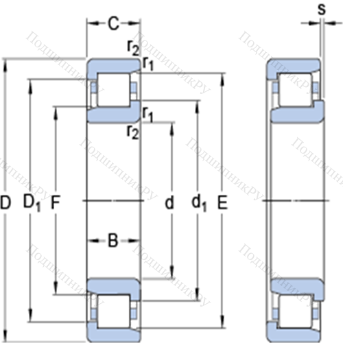 Однорядные цилиндрические роликоподшипники 319166 A