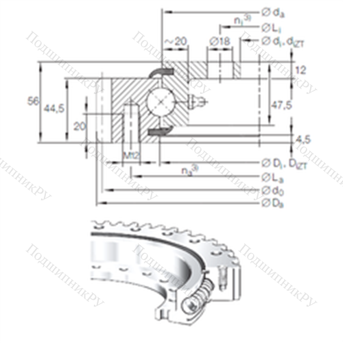 Подшипник шариковый опорно-поворотный VLA 20 1094 N
