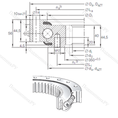 Подшипник шариковый опорно-поворотный VSI 20 0414 N
