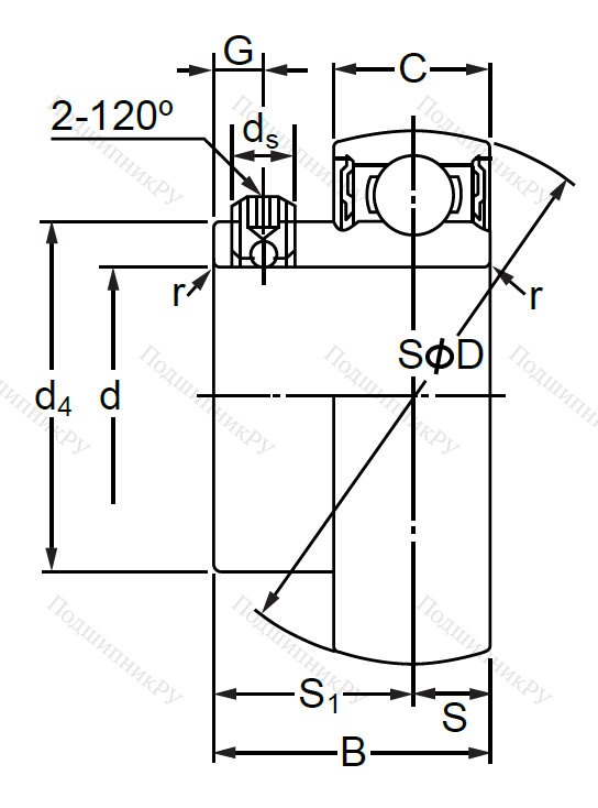 Радиальное шариковое однорядное подшипниковое тело, обладающее поверхностью сферической формы, которое может устанавливаться совместно с корпусами типов UCP, UCT, UCF, UCPA, UCFL. Внутренняя шина может иметь различную форму в зависимости от варианта установки (наиболее распространенными видами крепежа являются эксцентрики, стопорные винты и втулка для закрепления). Корпус оснащен посадочным сферическим отверстием и фланцем.