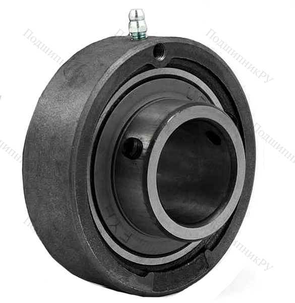 Деталь с круглым корпусом серии С, выплавленным из серого стойкого к износу чугуна, и радиальным шарикоподшипником разновидности UC, который удерживается в гнезде при помощи стопорных винтов и обладает более длинной внутренней обоймой в сравнении с прочими моделями. Снаружи устройство напоминает цилиндр.