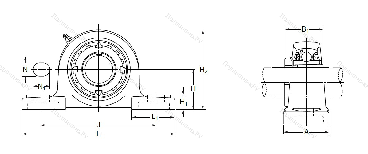 В конструкцию входит корпус Р-серии и шарикоподшипник разновидности UK, оснащенный желобом и парой уплотнений, крепящихся к валу с помощью специальной закрепительной втулки, поставляющейся отдельно.