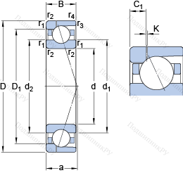 | Диаметр шарика | Dw | 25.4 | mm | |